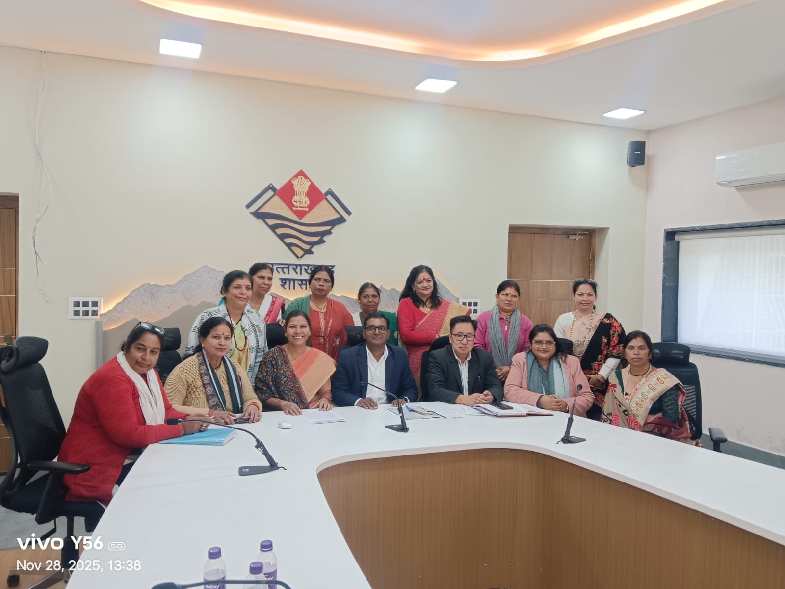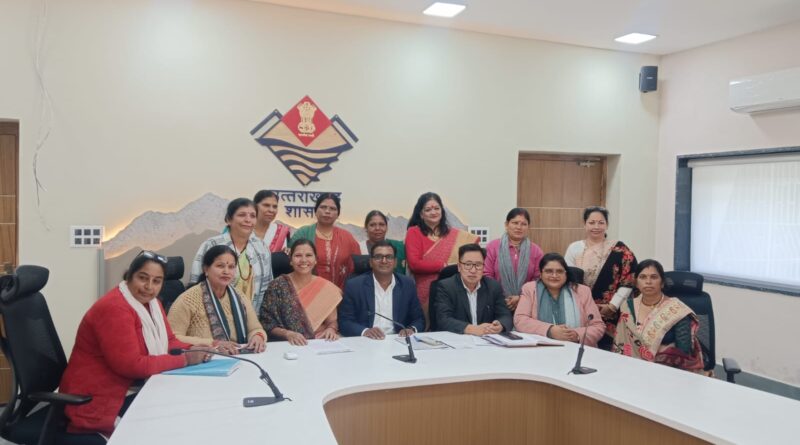उत्तराखंड राज्य आंगनबाड़ी कर्मचारी संघ ने महिला सशक्तिकरण एवं बाल विकास विभाग के सचिव चंद्रेश यादव के साथ की बैठक।